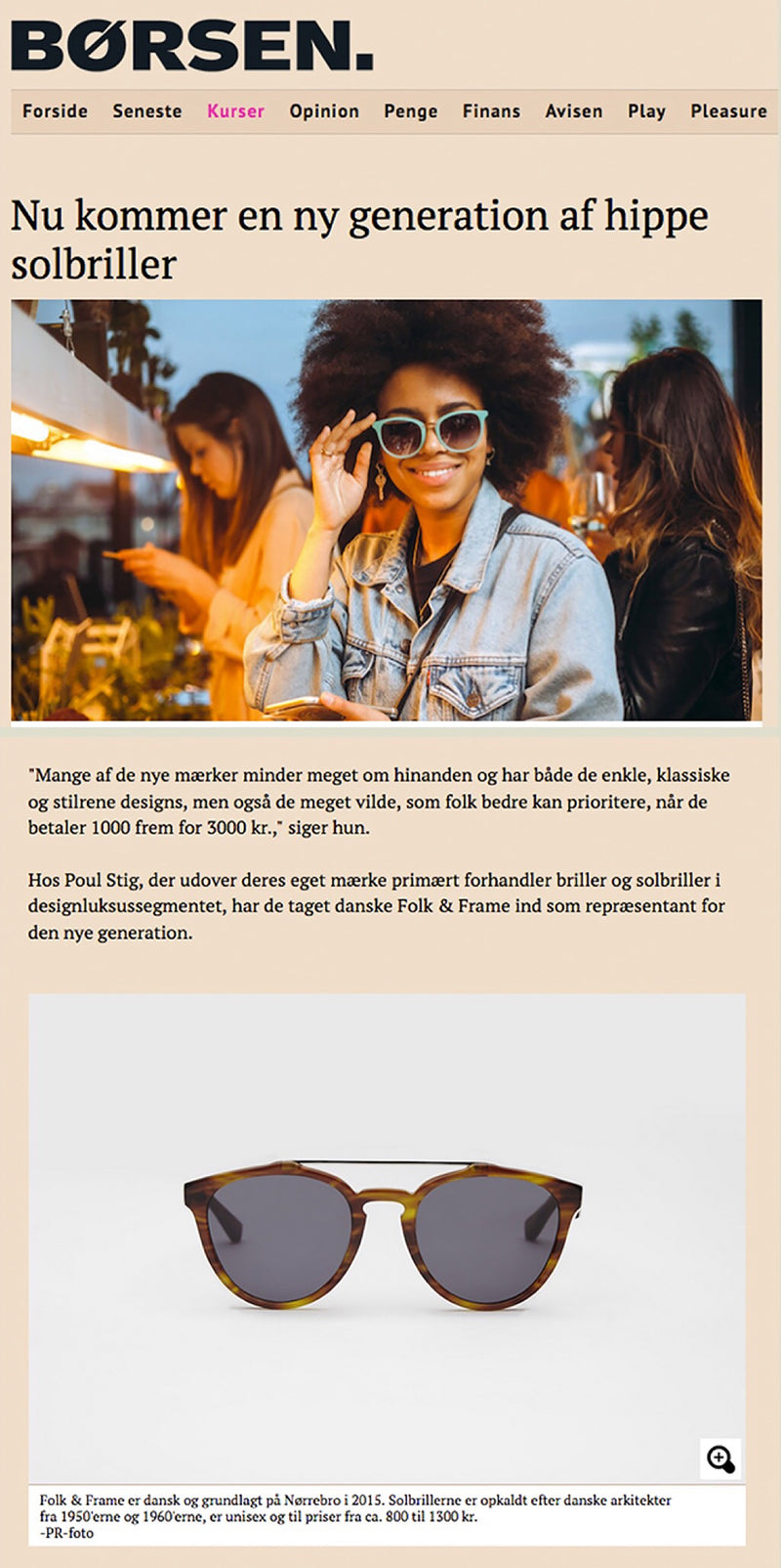 Mentioned as the new generation of sunglasses by the financial newspaper Børsen